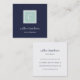 Moderne mais classique, le design carte de visite bleu marine comprend un élément carré en vert menthe pastel tenant votre monogramme initial unique, avec votre nom et titre ou nom d'entreprise sous en lettres serif minuscules. Personnalisez l'envers avec vos coordonnées dans marine correspondante. Un choix contemporain pour n'importe quelle profession; échantillon présenté pour les planificateurs d'événements.