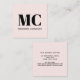 Carte De Visite Carré Monogramme moderne Initiales Nom Rose pâle