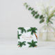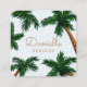 Conception de carte de visite élégante et féminine comportant une conception peinte pour la plage de palmier sur un arrière - plan bleu-clair.