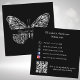 Carte De Visite Carré Papillon noir argent QR code élégant script