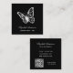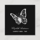 Un arrière - plan noir classique, décoré d'un grand papillon. Personnalisez et ajoutez votre nom et un texte sur le devant. Retour : Modèles pour Votre nom, titre, numéro de téléphone, adresse postale et de site, votre propre code QR à votre site Web ou compte de médias sociaux.