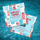 Design if two-sided and features a red and blue mason jar pattern motif.