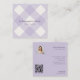Carte De Visite Carré Retro Purple Bakery Gingham QR Code Photo