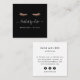 Le design unique de carte de visite carré pour vos extensions de cils ou services de teinture comprend votre nom ou nom d'entreprise dans la typographie de script moderne, lettré à la main, accentué d'une luxuriante paire de cils en feuille d'or faux rose sur un arrière - plan noir. Ajoutez une ligne de texte supplémentaire sous la rubrique correspondante en lettres noires pour votre profession ou titre. Personnalisez l'envers avec vos coordonnées. Un choix chic et professionnel pour les esthéticiens spécialisés dans les services de fougères. Comprend trois icônes de médias sociaux et un champ pour votre nom d'utilisateur.