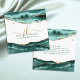 Carte De Visite Carré Script Agate Turquoise Monogramme Parties scintill