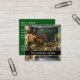 Carte de visite classique pour un service qui fait l'aménagement paysager et l'éclairage paysager conçu avec une belle maison paysagée avec éclairage extérieur illuminant la propriété et la bannière de nom d'entreprise de couleur or. Présenté sur un style carte de visite carré unique qui se distingue.