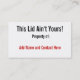 Carte d'identité de casquette à remplier à l'intérieur du bandeau. Voleurs d'arrêt et l'erroné en ajoutant votre nom et contact.