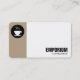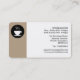 Un modèle de carte de visite créé avec l'industrie de la restauration en tête. Une marge de couleur 1in à gauche avec un cercle noir solide avec un symbole/logo de tasse de café (qui peut également être remplacé par votre propre logo) Nom de l'entreprise et type d'entreprise disposés en bas à droite. L'envers de la carte a la même disposition et une répétition du logo. Les heures d'ouverture et les autres coordonnées sont alignées à droite. N.B Ce modèle n'a pas de nom de contact ni de titre d'emploi puisqu'il est conçu pour fonctionner plus comme un mini-prospectus pour un café ou un restaurant plutôt que pour un représentant individuel ou d'entreprise. Ce modèle simple mais polyvalent est prêt à être customisé avec vos détails ou peut être customisé en plus.