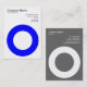 Modèle de carte de visite avec un cercle fermé ou un symbole "O" à l'avant. Nom de l'entreprise, type d'entreprise et adresse sur le devant avec nom, titre de l'emploi, téléphonie, adresses web et e-mail sur le dos, avec une disposition similaire sur un arrière - plan gris avec une répétition du symbole avant en blanc. Cette carte peut également être customisée.