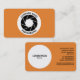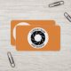 Modèle de carte de visite avec un symbole d'ouverture dans un cercle blanc avec nom de société de texte incurvé et type d'entreprise. Nom de l'entreprise et type d'entreprise à l'avant, avec nom et autres coordonnées au verso à l'aide du panneau en cercle blanc sans le symbole d'ouverture pour le nom et le titre de l'emploi, disposés à gauche.