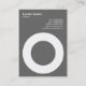 Modèle de carte de visite avec un cercle fermé ou un symbole "O" à l'avant. Nom de l'entreprise, type d'entreprise et adresse sur le devant avec nom, titre de l'emploi, téléphonie, adresses web et e-mail sur le dos, avec une disposition similaire sur un arrière - plan gris avec une répétition du symbole avant en blanc. Cette carte peut également être customisée.