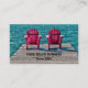 Adirondack rose turquoise transats cartes de visite professionnels. Des chaises muskoka rustiques sont installées sur une jetée au bord du lac. Retraite et chalet thème. Copyright de l'image Marg Seregelyi Photography.