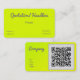 Ce modèle de carte de visite est doté d'un arrière - plan couleur uni jaune vif, parfaitement complété par un code QR et des polices grises de style lettré. L'utilisation de polices Pacifico et de angles arrondis ajoute une touche ludique et créative au design. Personnalisez les deux côtés maintenant en échangeant l'image de couverture pour votre propre code QR personnalisé. La carte est livrée en paquets de 100, offrant un bon rapport qualité-prix et un style hors pair.