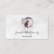 Cartes de visite avec une aquarelle représentant un chat noir et un bouquet floral violet clair et rose. Devant une grande lune. Design et magique.