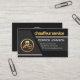 En haut de la carte se trouve le slogan "service de chauffeur" que vous pouvez éditer la légende pour répondre à vos besoins de service. En dessous du slogan se trouve votre nom prestigieux avec les coordonnées dans leurs boutons gris respectifs. A gauche, se trouve un faux logo de chauffeur en or que vous pouvez utiliser.