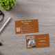 Un arrière - plan de couleur chocolat. Personnalisez et ajoutez votre photo, votre titre, votre nom/nom commercial et votre texte, les coordonnées à l'avant. Texte blanc. Retour : Modèles pour Votre nom, titre, numéro de téléphone, adresse postale et de site, votre propre code QR à votre site Web ou compte de médias sociaux. Image Facebook et Instagram/compte.
