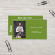 Arrière - plan vert basilic. Personnalisez et ajoutez votre photo, votre titre, votre nom/nom commercial et votre texte à l'avant. Texte blanc. Retour : Modèles pour Votre nom, titre, numéro de téléphone, adresse postale et de site, votre propre code QR à votre site Web ou compte de médias sociaux. Image Facebook et Instagram/compte.