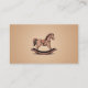 Un carte de visite élégant, avec un dégradé et un arrière - plan beige texturé et une illustration d'un cheval rocking artisanal dans les tons marron. La disposition de la carte est propre et épurée, dégageant une atmosphère chaleureuse, nostalgique et artisanale, qui crée un design professionnel qui met l'accent sur l'habileté et la passion de l'artisan pour les jouets en bois.