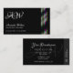 Carte De Visite Chic Noir Couleur Noir Stripes Monogramme