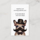 Drôle et mignon, ce carte de visite de toiletteur de chien attirera l'attention de n'importe qui. Doté d'un bulldog français intelligent et d'une magnifique moustache, portant un casquette bowler.