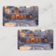Christmas Holiday Business Card for your professional decorating, lighting business. Pretty country home with beautiful holiday decorations on the windows and doors. Pine trees have been decorated with sparkling lights.