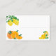 Cartes de place mariage de citron et d'aquarelle orange. Unique aquarelle peinture d'oranges et de segments orange avec feuillage vert et citrons jaunes sur une branche avec des segments de verdure et de citron. Belle aquarelle illustrant le vin rouge et le fromage français, vin mousseux et flûtes de vin mousseux, feuillage vert, fleurs, notes musicales et un château français avec le drapeau français. oeuvre originale de l'artiste Catherine Sweetman