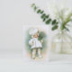 Un carte de visite vintage avec du charme de Noël comportant un garçon mignon d'hiver avec une brindille de sapin, peinte par l'illustrateur américain/créateur publicitaire Ellen Hattie Clapsaddle.