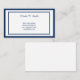 Cette carte de visite est présentée dans un design classique de base avec une bordure en blanc avec des bordures de couleur bleu royal et du texte.
