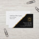 Classy société de titre immobilier cartes de visite pour un agent de fermeture ou un locataire dans l'immobilier conçu dans l'industrie de l'or éléments de conception de tonalité, y compris un emblème maison unique icône et simple disposition professionnelle carte de visite vous pouvez customiser en ligne imprimé sur carte de qualité stock avec revêtement UV sur la finition mate.