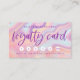 Beau artiste ongles, beauté, ou manucure loyauté carte de visite. Notre design présente notre propre arrière - plan holographique abstrait rose, jaune et bleu irisé. "Carte de fidélité" est affiché dans un script élégant. Customisez avec votre nom d'entreprise et votre offre de fidélité. L'envers est customisé dans un logo monogramme dans une police de calligraphie de script élégante, avec les coordonnées. **Note : pour le monogramme, assurez-vous de ne remplacer que le texte du milieu pour que les pointes étendues restent sur les extrémités des lettres** Toutes les illustrations sont des illustrations dessinées à la main par Moodthology Papery.