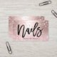 Un élégant technicien spécialiste des ongles moderne et élégant typographie carte de visite avec élégant moderne brillant rose parties scintillant en or confetti et parties scintillant en or rose dégradé sombre avec or rose texture métallique et une typographie moderne, ajoutez vos médias sociaux.