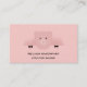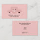 Cartes de visite avec un dessin d'un joli visage de cochon rose. Levé par ses sabots noirs et regardant sur une table. Dessin mignon et fantaisiste. Placez-vous sur un arrière - plan rose aux coeurs défraîchis.