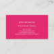 Ce design abstrait chic, élégant, professionnel mais décontracté présente des gouttes de peinture monochromatique d'inspiration impressionniste, des éclaboussures et des éclaboussures sur le devant dans des teintes et des nuances de rose, allant du magenta de framboise brillant aux riches tons de bijoux fuchsia chaud au vin marsala de marron profond, ainsi que des teintes roses de bonbons pastel girly clair dans des couleurs ludiques unicornes avec un aspect acrylique, gouache ou encre. Le texte personnalisable s'affiche au centre à l'intérieur d'une grande pellicule de peinture rose chaud. Cette conception inclut également un code QR personnalisable sur le devant. Un texte plus personnalisable apparaît sur le dos en blanc sur un arrière - plan rose chaud clair, simple et minimaliste. Ce carte de visite cool féminin constitue un complément élégant, unique et avant-gardiste à votre marque d'entreprise. Ce design amusant est idéal pour les petits entrepreneurs créatifs comme les artistes, les peintres, les graphistes, les architectes d'intérieur, les écrivains, les créateurs et les artisans, ainsi que les professeurs d'art, les hipsters ou les hippies, ou toute personne dans une profession qui cherche un carte de visite unique. Vous pouvez personnaliser cet élément en modifiant le code et le texte QR dans le modèle de produit.