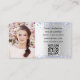 Un arrière - plan faux argenté. Décoré de confettis bleu clair. Personnalisez et ajoutez le logo de votre entreprise et un texte à l'avant. Retour : Modèles pour Votre propre photo, nom, titre, numéro de téléphone et votre propre code QR.