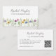 Ces cartes de visite floraux uniques sont décorés de fleurs sauvages aquarelles. Facilement personnalisable avec vos détails et QR Code. Utilisez l'outil de conception pour modifier la taille, le style ou la couleur du texte. En créant notre oeuvre, vous ne trouverez pas cette image exacte d'autres créateurs. Aquarelle originale © Michele Davies.