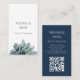 Code QR carte de visite moderne Botanical greenery, avec un design succulent branché sur un arrière - plan blanc et bleu. Avec des textes bleus et blancs personnalisables, vous pouvez ajouter vos propres informations. Vous ajoutez votre site Web au champ de code QR pour que vos clients puissent l'analyser. Une façon élégante de promouvoir votre entreprise de design avec un style élégant.