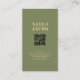 Conception carte de visite avec un motif à damiers vert profond dans une mise en page propre et minimale, avec un code QR pour un accès rapide à un site Web ou un portfolio. Convient aux marques de vêtements faits main, aux professionnels créatifs ou aux entreprises de caractère.