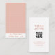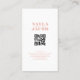 Conception carte de visite avec un motif rose à damiers et une mise en page propre et minimale, avec un code QR pour l'accès direct à un site Web ou un portfolio. Convient aux entreprises de vêtements faits main, aux marques de caractère ou aux professionnels de la création.