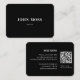 Carte de visite de code QR noir minimal moderne. Modifiez votre produit en quelques minutes en ajoutant vos données. Personnalisez votre nom ou nom commercial. Cette carte recto-verso permet une grande place sur l'arrière pour vos coordonnées et détails.