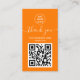 Script minimaliste moderne et code QR en orange et blanc ordre d'affaires merci. Ajoutez vos médias sociaux. Avec une police de script de signature élégante, toutes les couleurs sont modifiables, ajoutez votre logo. Avis 5 étoiles pour vos clients.