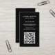 Carte de visite vertical moderne avec un style simple et minimaliste avec votre QR Code sur le devant et les icônes de médias sociaux sur le dos. Tous les éléments de conception sont en blanc sur un arrière - plan noir. Un design simple et minimal qui peut être customisé pour n'importe quel professionnel d'affaires.