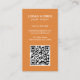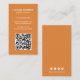 Carte de visite vertical moderne avec un style simple et minimaliste avec votre QR Code sur le devant et les icônes de médias sociaux sur le dos. Tous les éléments design sont en blanc sur un arrière - plan orange. Un design simple et minimal qui peut être customisé pour n'importe quel professionnel d'affaires.