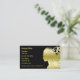 Cartes de visite de coiffure avec dame aux cheveux dorés et texte couleur or contre un arrière - plan noir. Classé et élégant, ce carte de visite de beauté convient à un coiffeur ou un professionnel de la cosmétique.