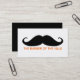 Une grande moustache noire avec votre nom ou nom de la société au-dessous de lui et toute autre information sur le dos