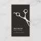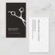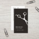 Elégant modèle de carte de visite personnalisable avec arrière - plan noir (vous pouvez le modifier) et icône ciseau blanc. Design minimaliste et élégant, parfait pour salon de beauté, coiffeur, coiffeur, coiffeur.
