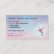 Une conception influencée asiatique fait un effet calmant merveilleux pour un salon, un spa ou des affaires de soin personnel. Les branches d'un arbre de fleurs de cerisier s'étendent au-dessus d'un arrière - plan rose et azuré doux sur ce carte de visite. Un colibri avec la même conception florale est venu pour inspecter les fleurs. L'information principale d'affaires imprime sur l'avant avec la partie de l'information de contact sur l'inverse. Disponible avec les produits assortis.