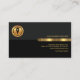Au-dessus, le même thème de conception est utilisé. Au-dessus de la bande d'or se trouve le nom de l'entreprise avec les coordonnées et l'option slogan directement en dessous. Le logo en or se trouve dans le coin supérieur gauche.