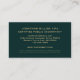 Faites une impression durable avec nos cartes de visite professionnels conçus pour les comptables, les préparateurs fiscaux et les professionnels de la finance. Ces cartes élégantes présentent un magnifique emblème géométrique doré sur un riche arrière - plan vert foncé. Ces cartes sont non seulement élégantes, mais aussi durables et faites à dernier. Parfait pour les comptables, les fiscalistes, les conseillers financiers ou tout professionnel d'affaires qui souhaite présenter leur marque de manière unique et sophistiquée. Ces cartes sont personnalisables, vous permettant d'ajouter votre touche personnelle pour les rendre vraiment uniques. Commandez dès aujourd'hui et élevez votre marque au niveau supérieur avec ces cartes de visite luxueux.