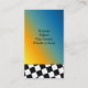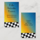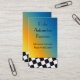 Un design cool dans les tons jaune, orange et bleu accentué par une bordure à damiers noire et blanche. Customisez avec toutes vos informations d'affaires comme vous le souhaitez.