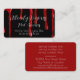 Ces cartes de visite personnalisés de design d'Halloween effrayants présentent un arrière - plan noir avec du sang rouge coulant du haut. Un exemple de nom d'entreprise ou d'entreprise est imprimé sur les gouttes sanglantes, qui peuvent être personnalisées pour inclure votre propre nom ou texte personnalisé. L'arrière de la carte comporte un arrière - plan rouge et un texte blanc.